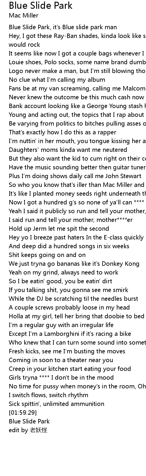 | [02:01.23] | Blue Slide Park |