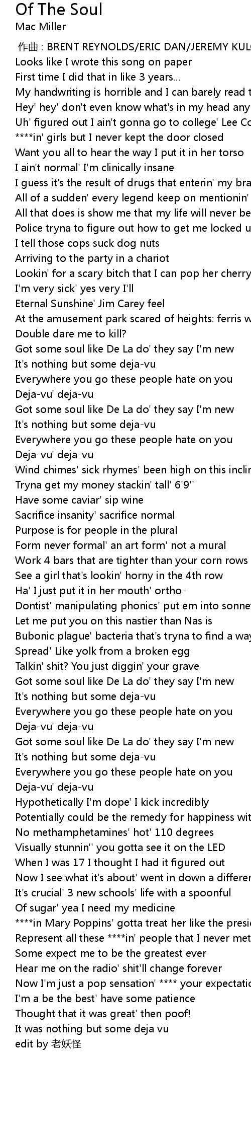 | [01:03.21] | Got some soul like De La do' they say I'm new |