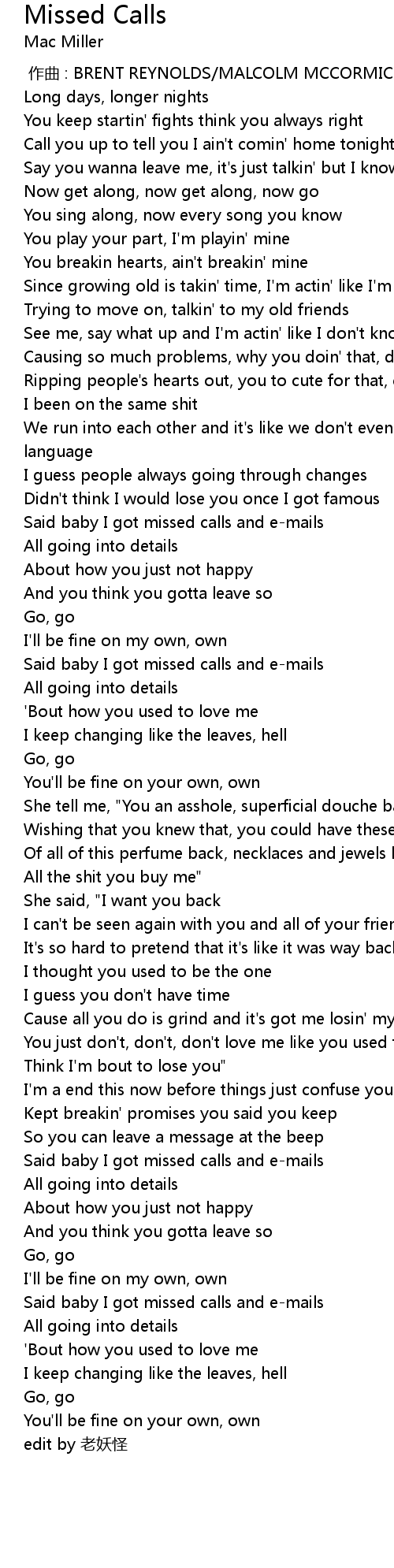 | [01:08.01] | Said baby I got missed calls and e-mails |