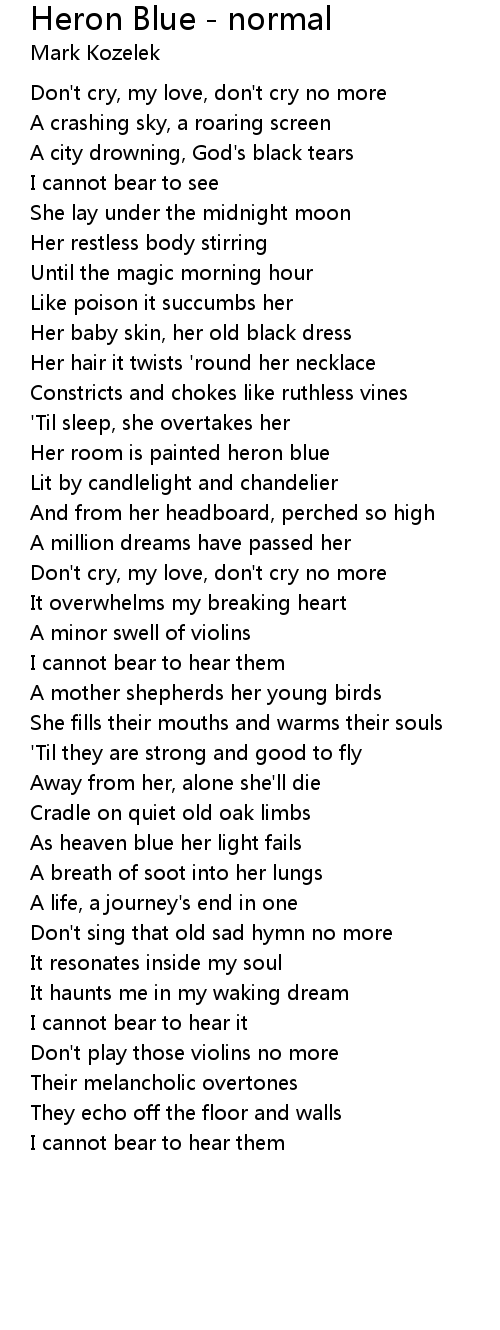 Don't cry, my love, don't cry no more |