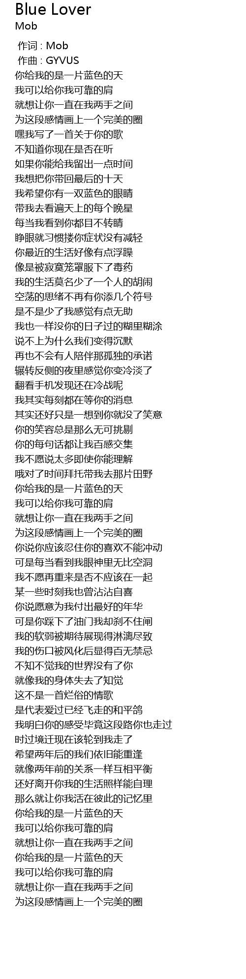 | [00:00.000] | 作词 : Mob |