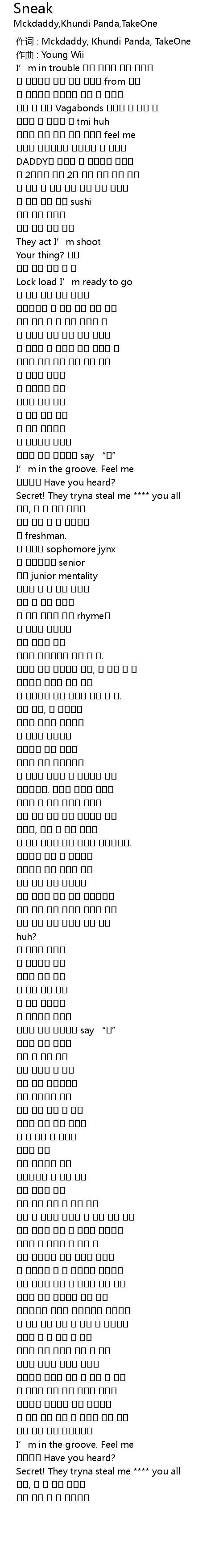 | [00:00.000] | 作词 : Mckdaddy, Khundi Panda, TakeOne |