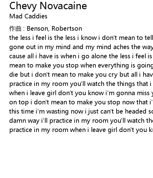 | the less i feel is the less i know i don' t mean to tell you so cause now i' ve gone out in my mind and my mind aches the way you do i just wanna see it through cause all i have is when i go alone the less i feel is the less on top i don' t mean to make you stop when everything is going fine the fort i build is where i die but i don' t mean to make you cry but all i have is when i go away i' ll practice in my room you' ll watch the things that i do i' ll practice in my room when i leave girl don' t you know i' m gonna miss you the less i feel is the less on top i don' t mean to make you stop now that i' m not by your side cause all this time i' m wasting now i just can' t be headed south got to do it in my own damn way i' ll practice in my room you' ll watch the things that i do i' ll practice in my room when i leave girl don' t you know i' m gonna miss you |