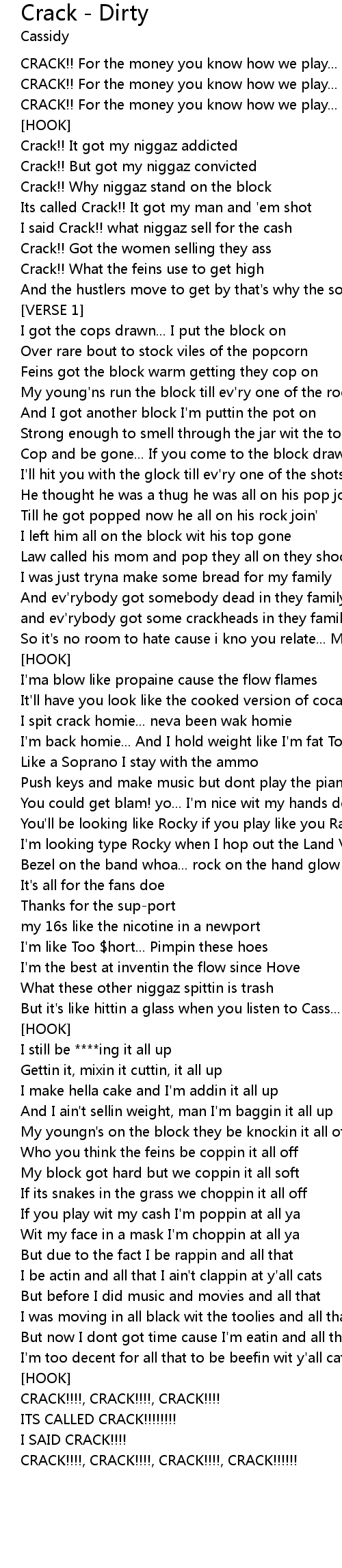CRACK!! For the money you know how we play... we sell that C-R-A-C-K |