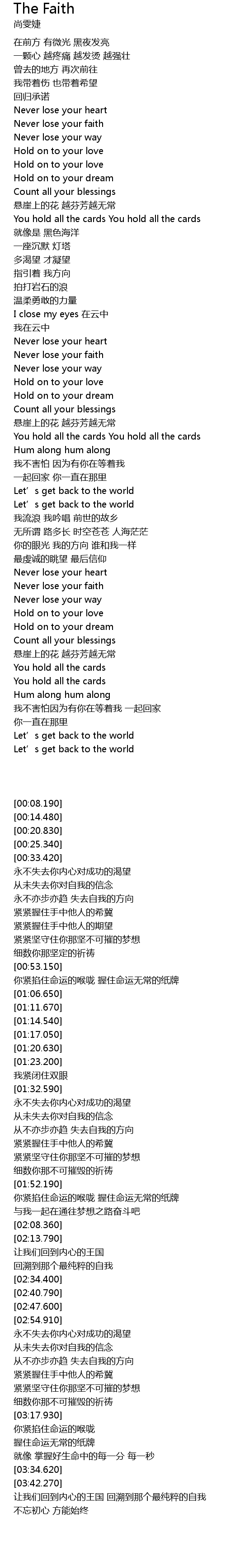 | [02:54.910] | zui qian cheng de tiao wang zui hou xin yang |