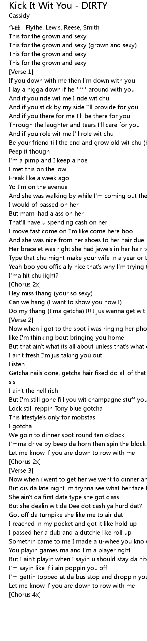 | Song | Kick It Wit You - DIRTY |