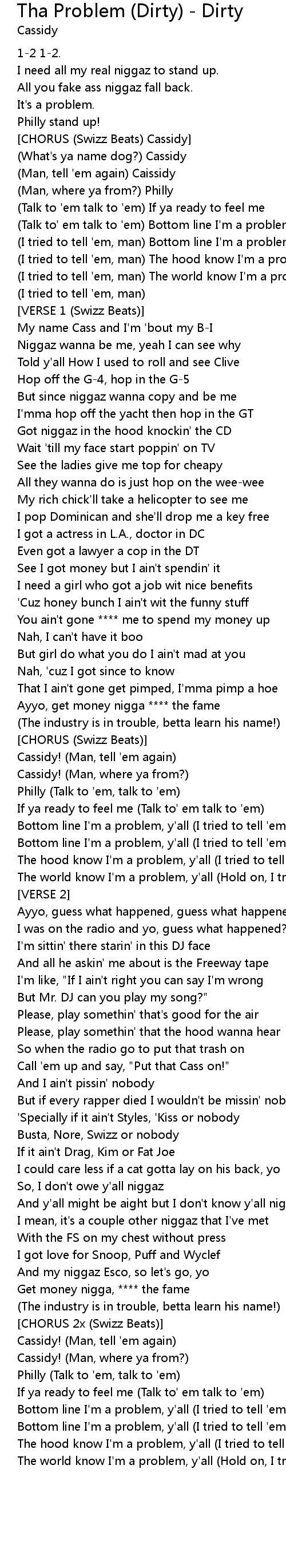 [CHORUS (Swizz Beats) Cassidy] |