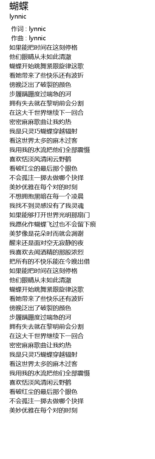 | [00:00.000] | 作词 : lynnic |