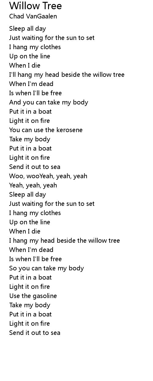 I hang my head beside the willow tree |