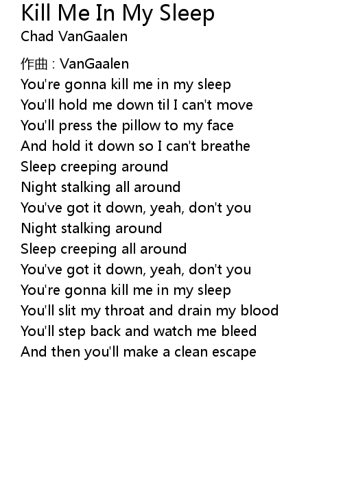 | You' re gonna kill me in my sleep | |