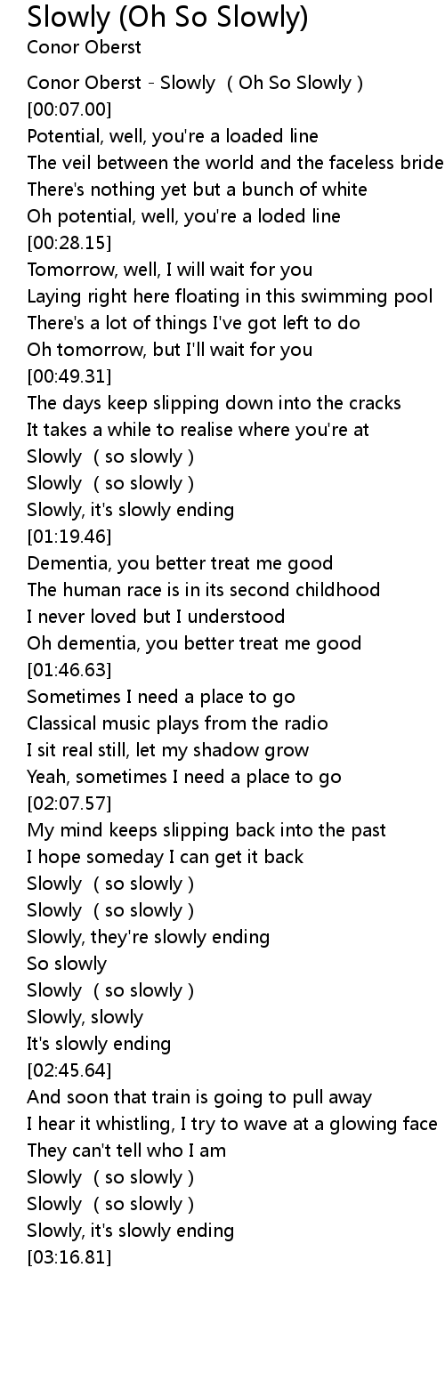 | [00:01.00] | Conor Oberst - Slowly (Oh So Slowly) |