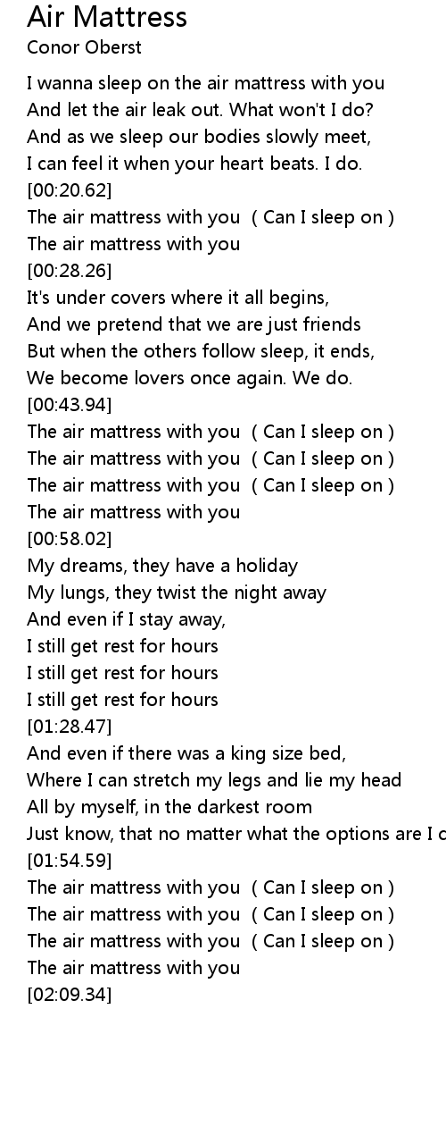 | [00:21.86] | The air mattress with you (Can I sleep on) |