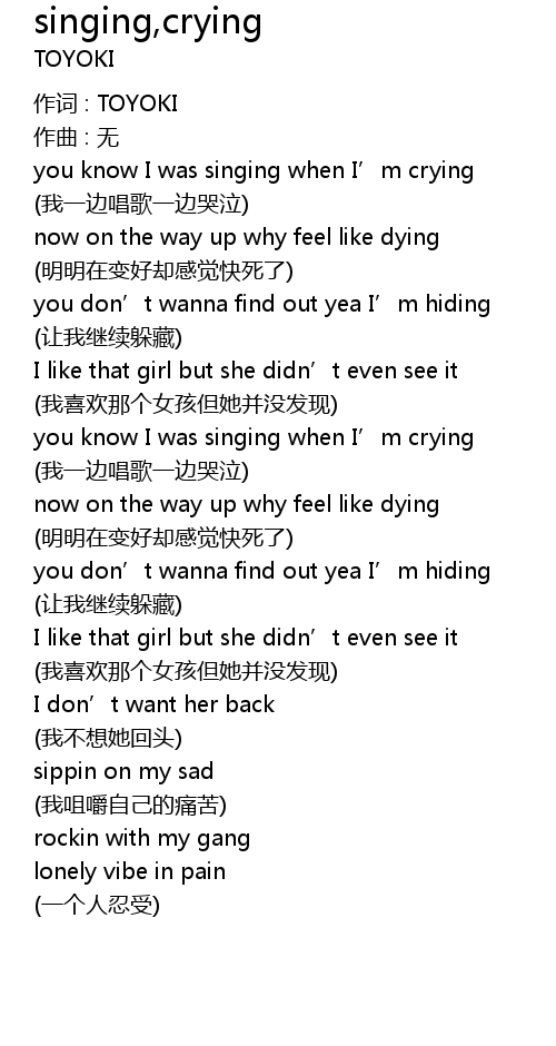 | you know I was singing when I’m crying | |