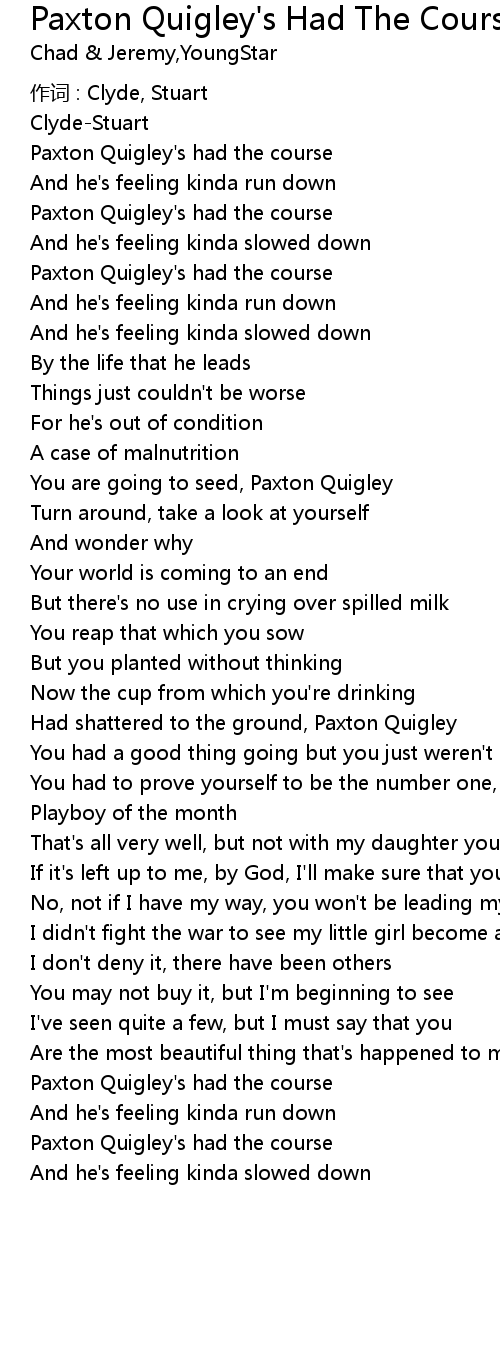 | Paxton Quigley' s had the course | |