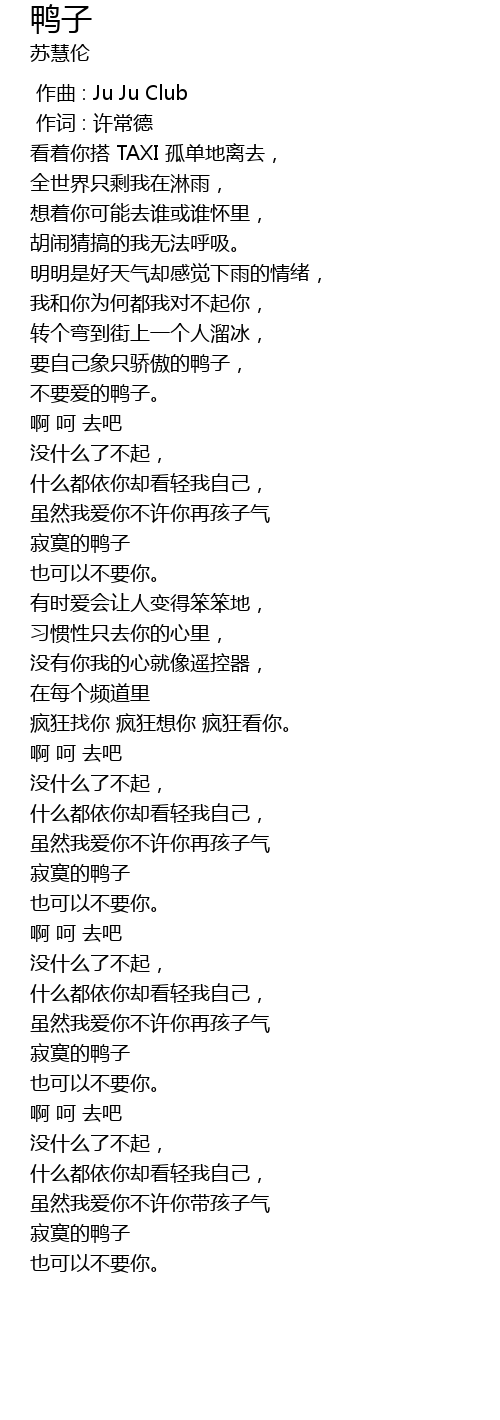 | [02:20.900] | 寂寞的鸭子 |
