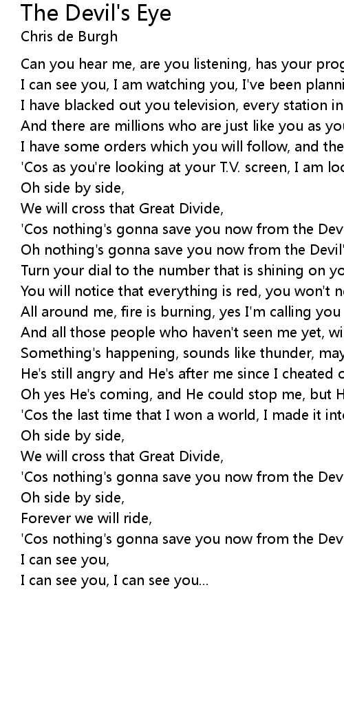 'Cos nothing's gonna save you now from the Devil's Eye; |