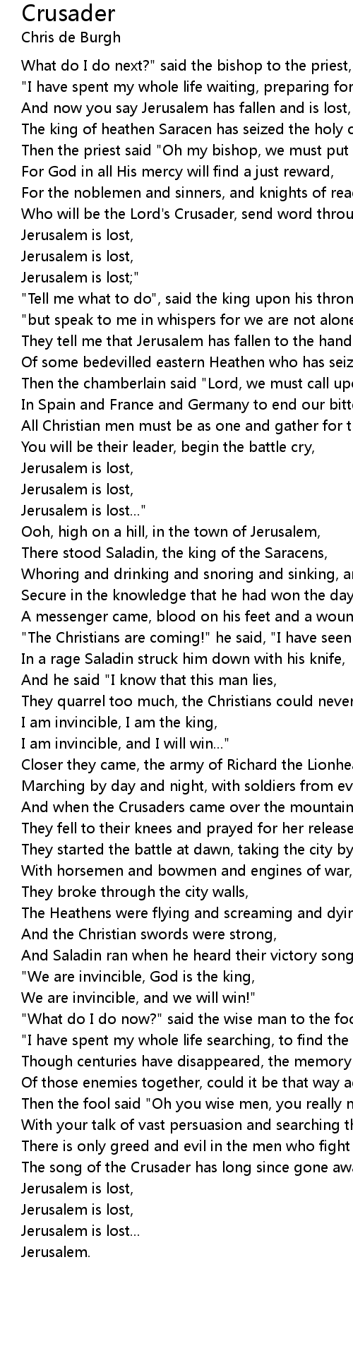 And when the Crusaders came over the mountain and they saw Jerusalem, |