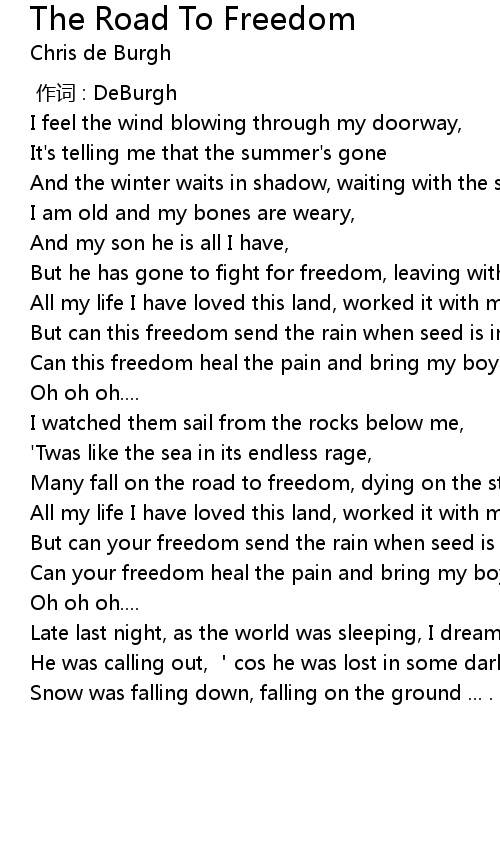 | [00:42.53] | But he has gone to fight for freedom, leaving with my heart; |