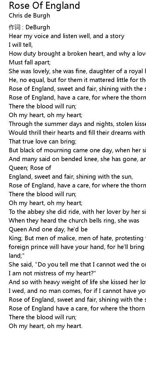 | Song | Rose Of England |