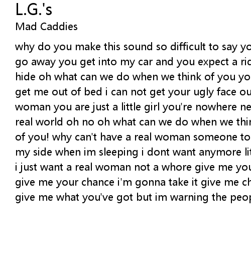 why do you make this sound so difficult to say you follow me around you will not go away you get into my car and you expect a ride, i wanna go into a hole and hide oh what can we do when we think of you you call me in the morning and you get me out of bed i can not get your ugly face out of my head you are not a woman you are just a little girl you're nowhere near you're nowhere near the real world oh no oh what can we do when we think of you what we do when we think of you! why can't have a real woman someone to watch over me someone to sat by my side when im sleeping i dont want anymore little girls coming around no more i just want a real woman not a whore give me your heart i just might break it give me your chance i'm gonna take it give me chance you throw me your love, you give me what you've got but im warning the people have said enough |