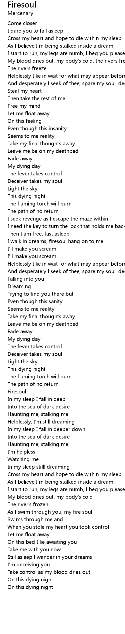 | I walk in dreams, firesoul hang on to me | |