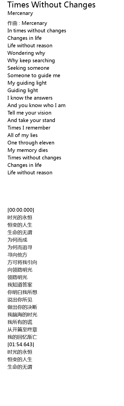 Times Without Changes Lyrics