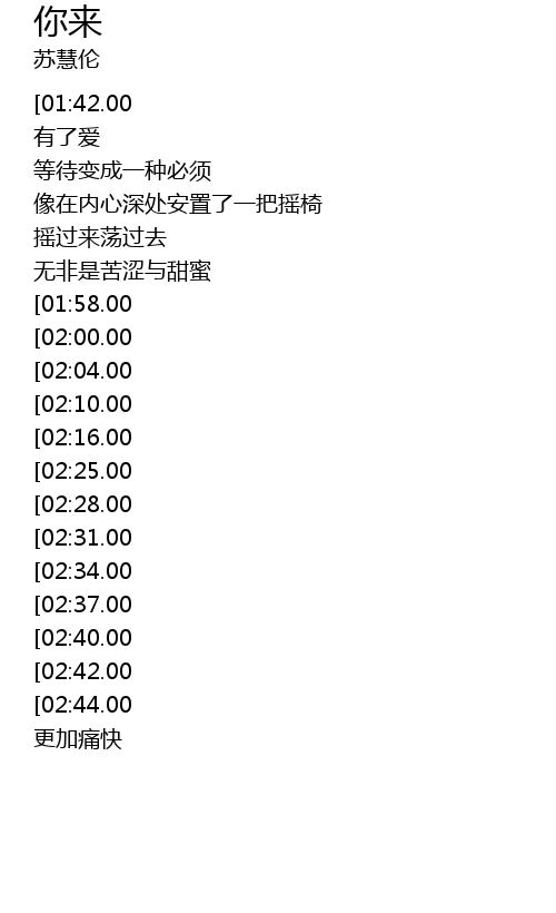 | [01:17.00][02:25.00][02:52.00] | 你来 你来 你来 |