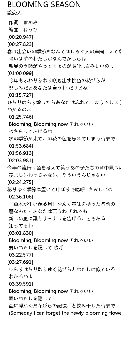 | [03:01.987] | Blooming, Blooming now それでいい |
