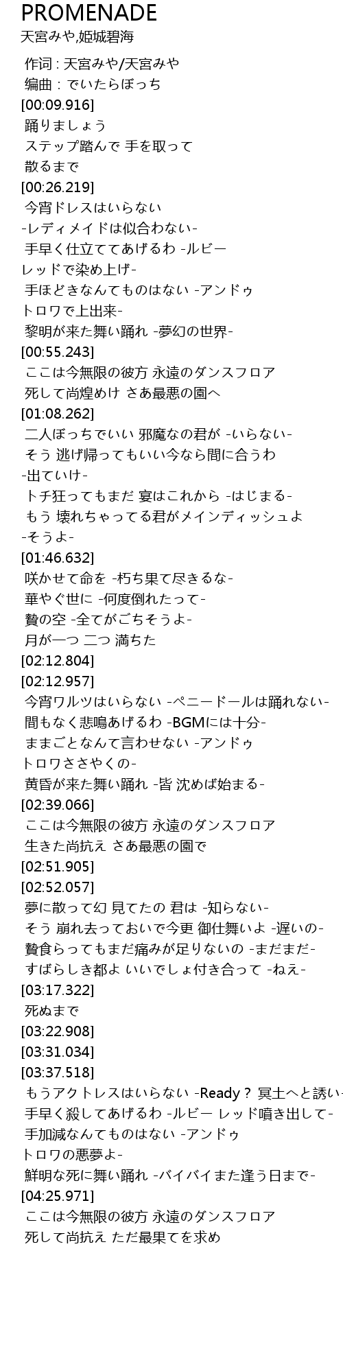 | [04:06.268] | 手早く殺してあげるわ -ルビー レッド噴き出して- |