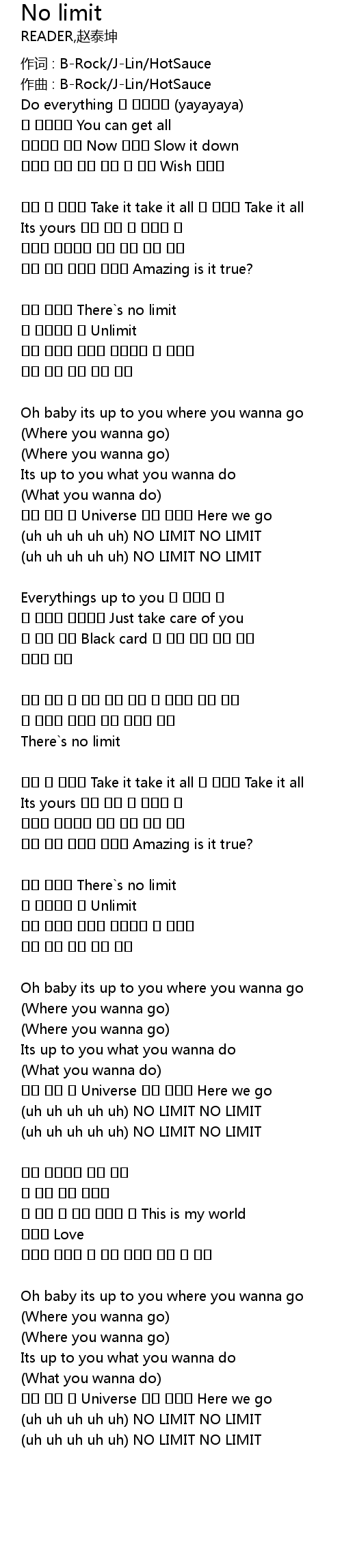 | (uh uh uh uh uh) NO LIMIT NO LIMIT | |