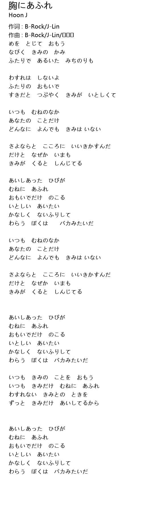 いつも きみだけ むねに あふれ