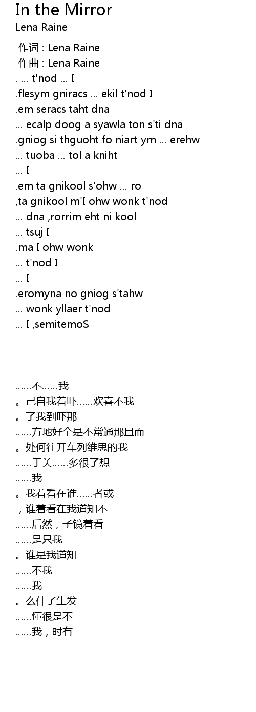 | [04:17.00] | ... dna , rorrim eht ni kool |