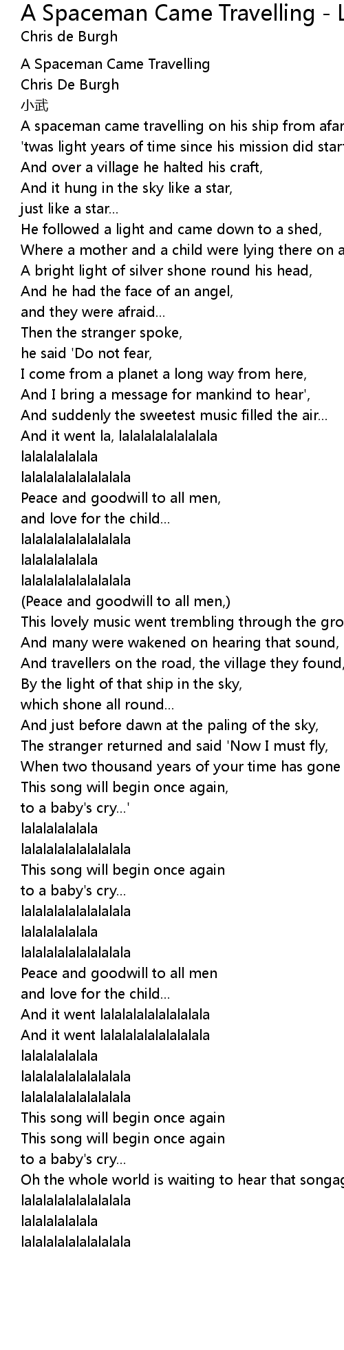 | [00:04.00] | A Spaceman Came Travelling |