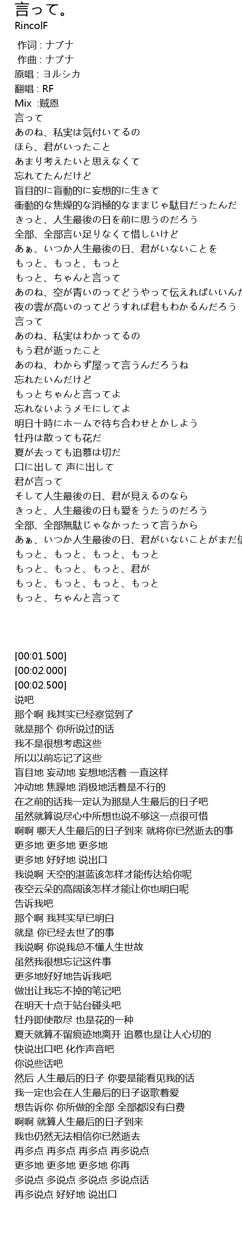 | [00:02.000] | 翻唱 : RF |