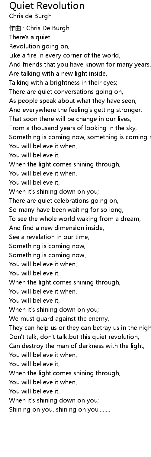 | Don' t talk, don' t talk, but this quiet revolution, | |