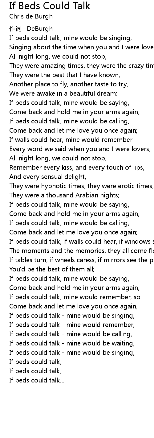 | If beds could talk, if walls could hear, if windows see, imagine, | |