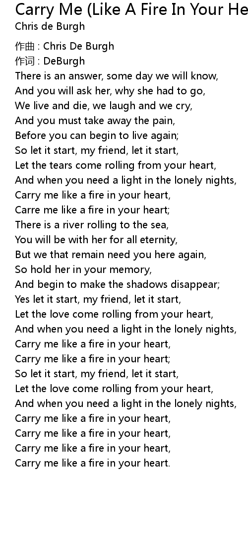 | Song | Carry Me (Like A Fire In Your Heart) - Re-Recorded Version |