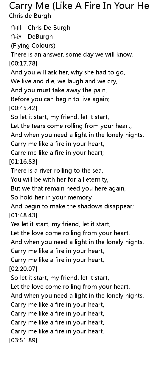 | [00:00.00] | zuo qu : Chris De Burgh |