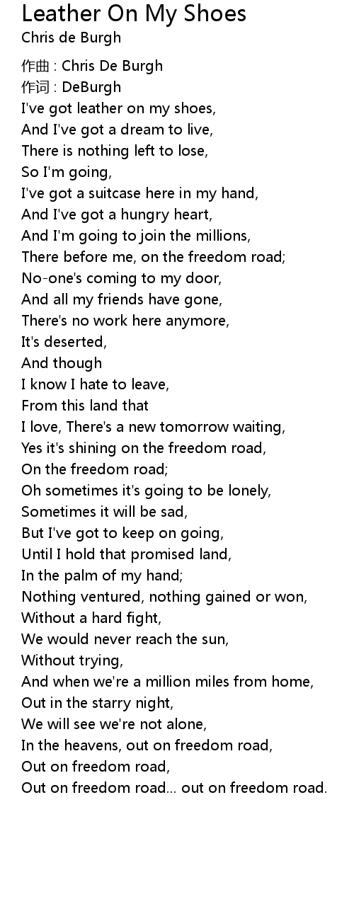 | I' ve got leather on my shoes, | |