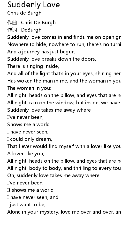 | Suddenly love breaks down the doors, | |