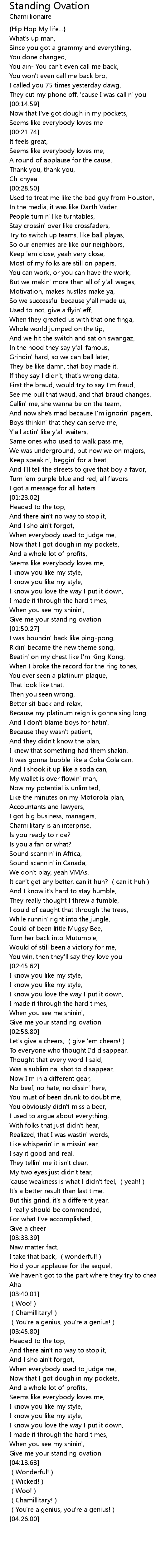 | [01:48.70] | Give me your standing ovation |