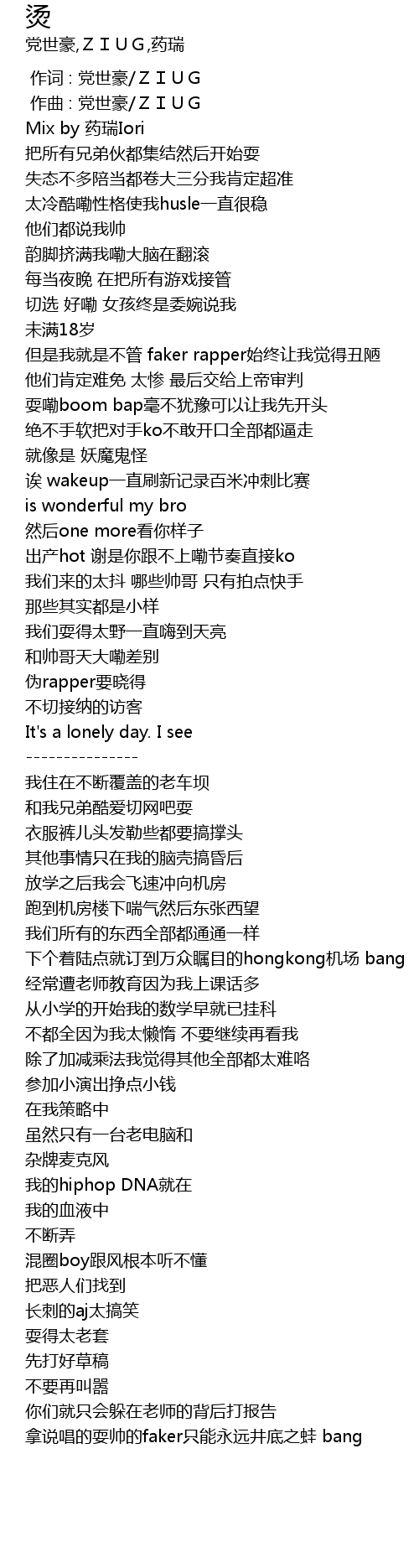 | [00:00.000] | 作词 : 党世豪/ZIUG |