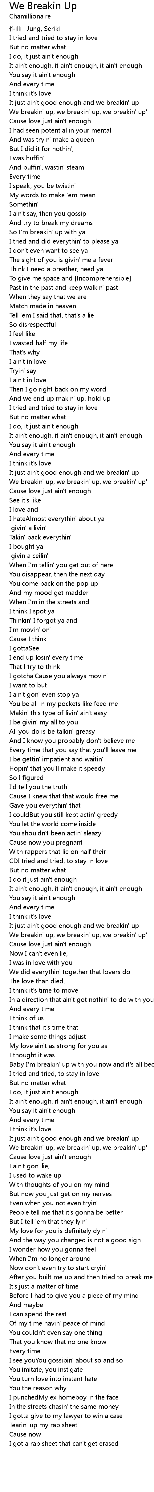 | It just ain't good enough and we breakin' up | |