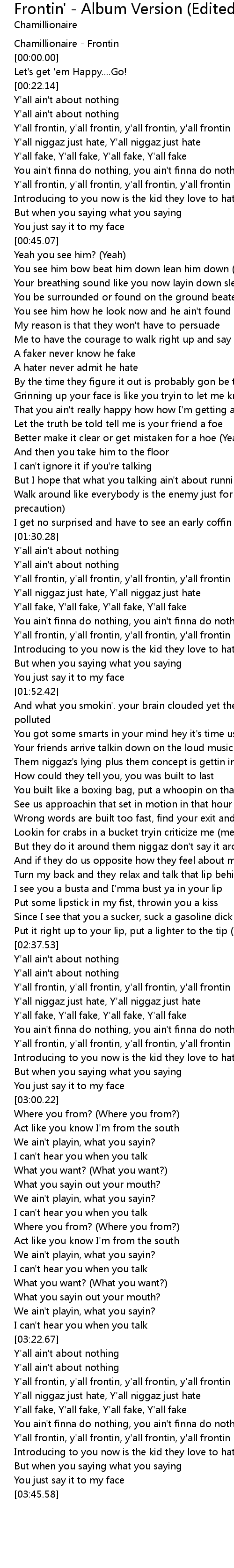 Y'all frontin, y'all frontin, y'all frontin, y'all frontin |