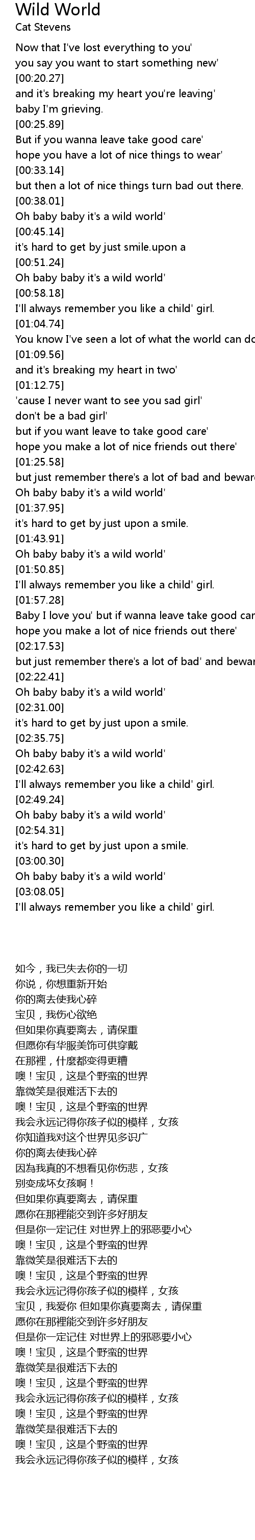 Oh baby baby it's a wild world' |