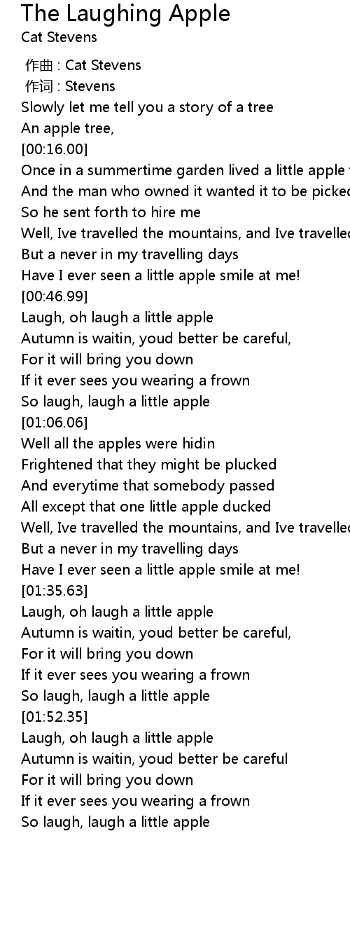 | [00:47.85] | Laugh, oh laugh a little apple |