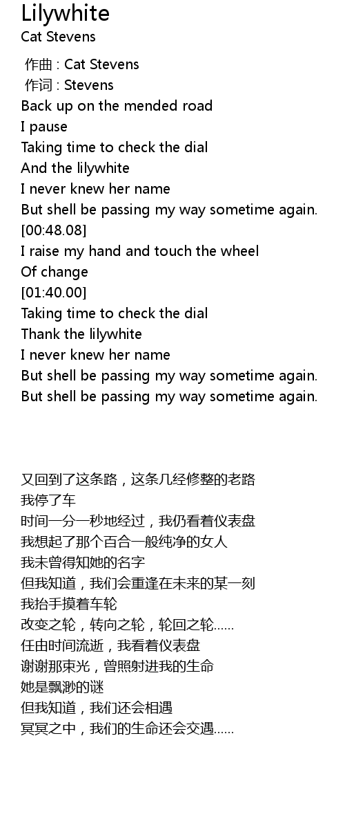 | [00:00.00] | zuò qǔ : Cat Stevens |