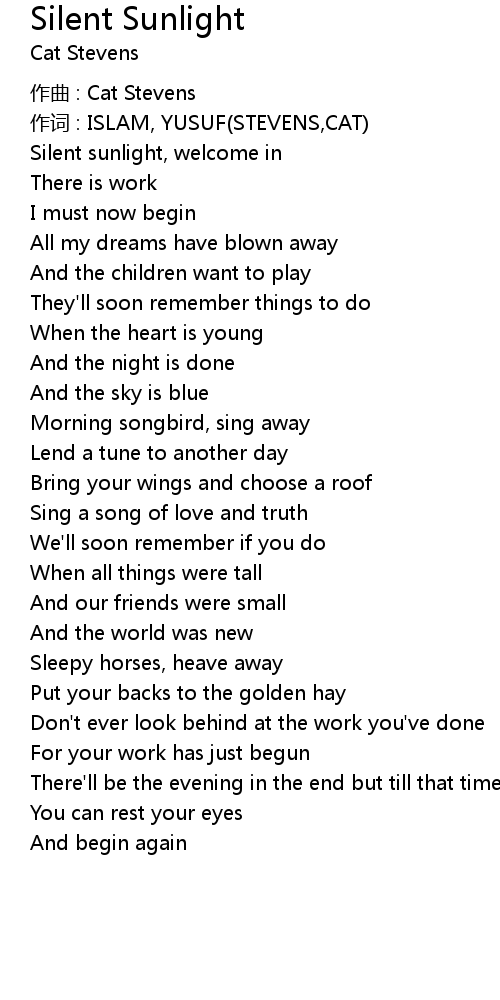 | zuò qǔ : Cat Stevens | |