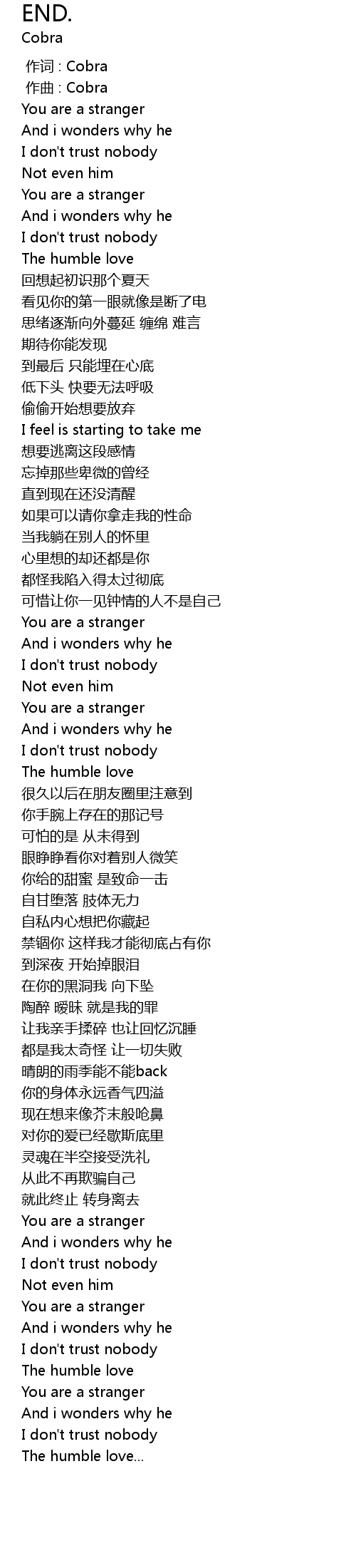 | [00:00.000] | 作词 : Cobra |