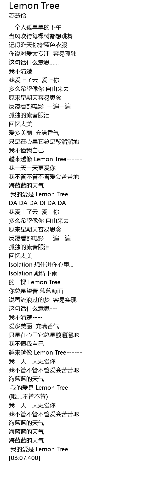 | [03:04.400] | 我的爱是 Lemon Tree |